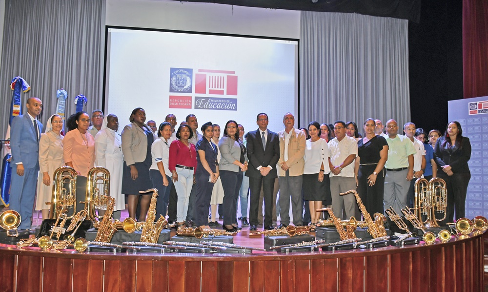 El ministro de Educación, Antonio Peña Mirabal, presidió el miércoles 20 de noviembre, en el Instituto Politécnico Loyola (IPL), la entrega de 680 instrumentos musicales a las bandas de música de 40 centros educativos.