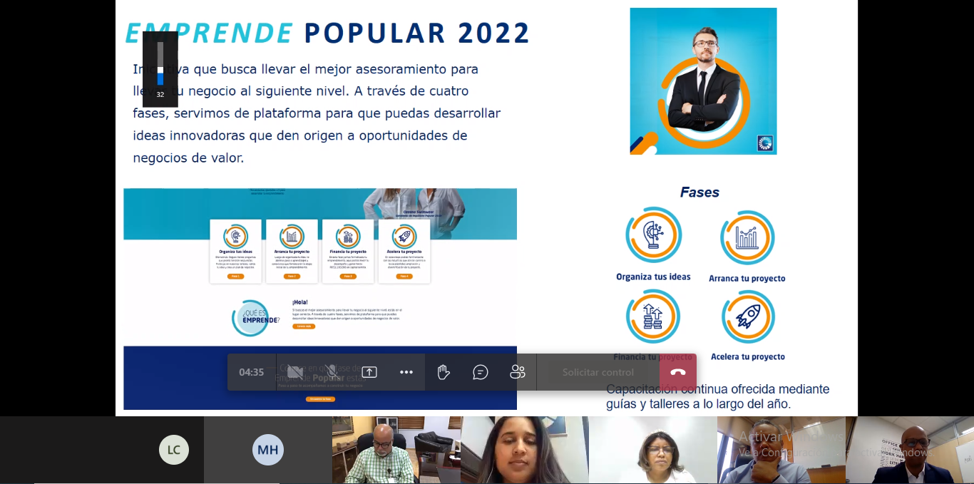 Miembros del Instituto Politécnico Loyola (IPL) y ejecutivos del Banco Popular sostuvieron un encuentro virtual el pasado miércoles 16 de febrero, donde la entidad bancaria presentó sus programas de educación financiera Impúlsate y Copa Universitaria Popular, con el objetivo de analizar la posibilidad de realizarlos en esta casa de estudios.