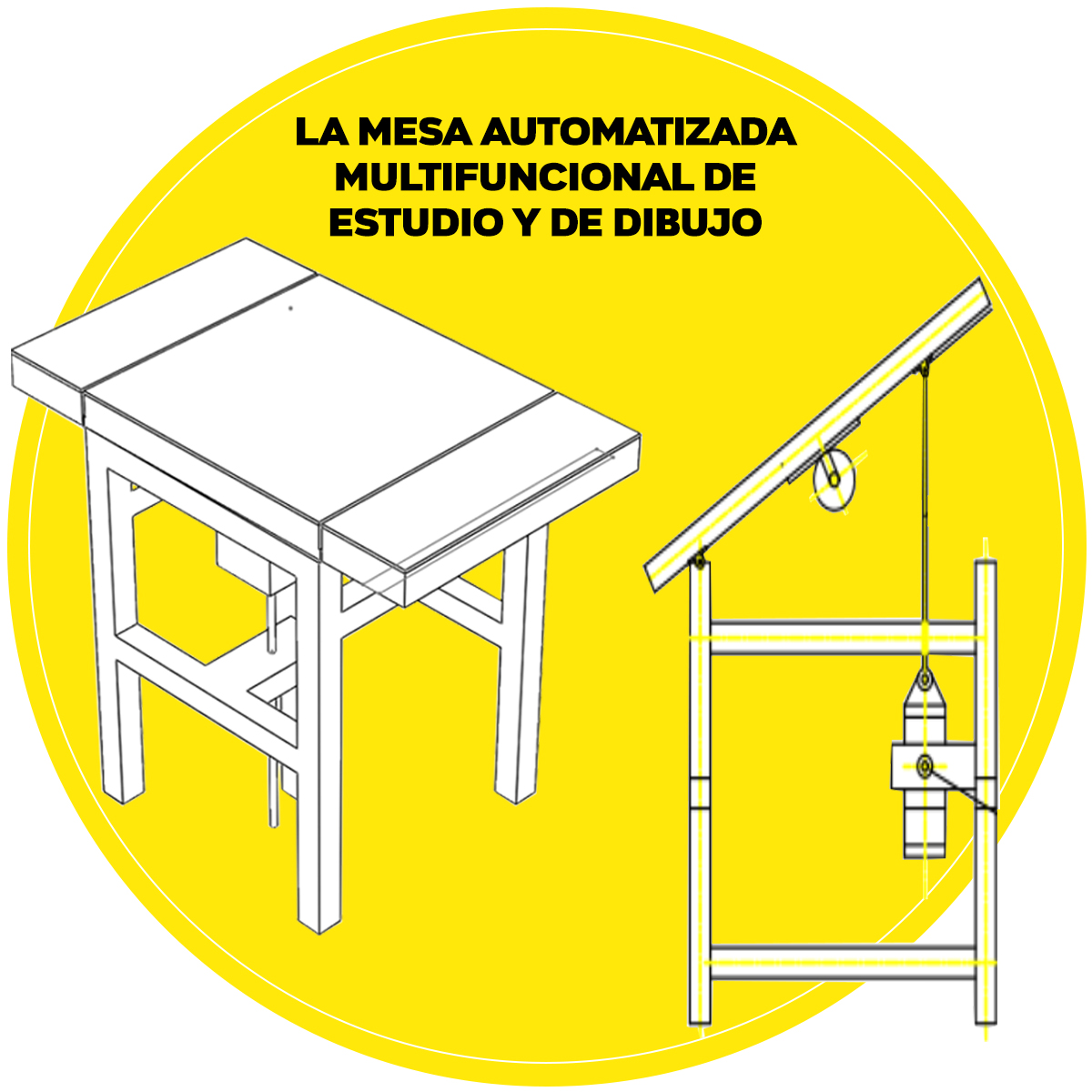El diseño fue creado en un proyecto iniciado en 2017 como parte de la Feria Técnica de Creatividad e Innovación –Ingenium–, y consiste en una mesa automatizada multifuncional de estudio y de dibujo, diseñada para ser utilizada en las aulas u otros espacios para realizar un dibujo o un plano y estudiar a la vez, evitando así tener que desplazarse a otro lugar.