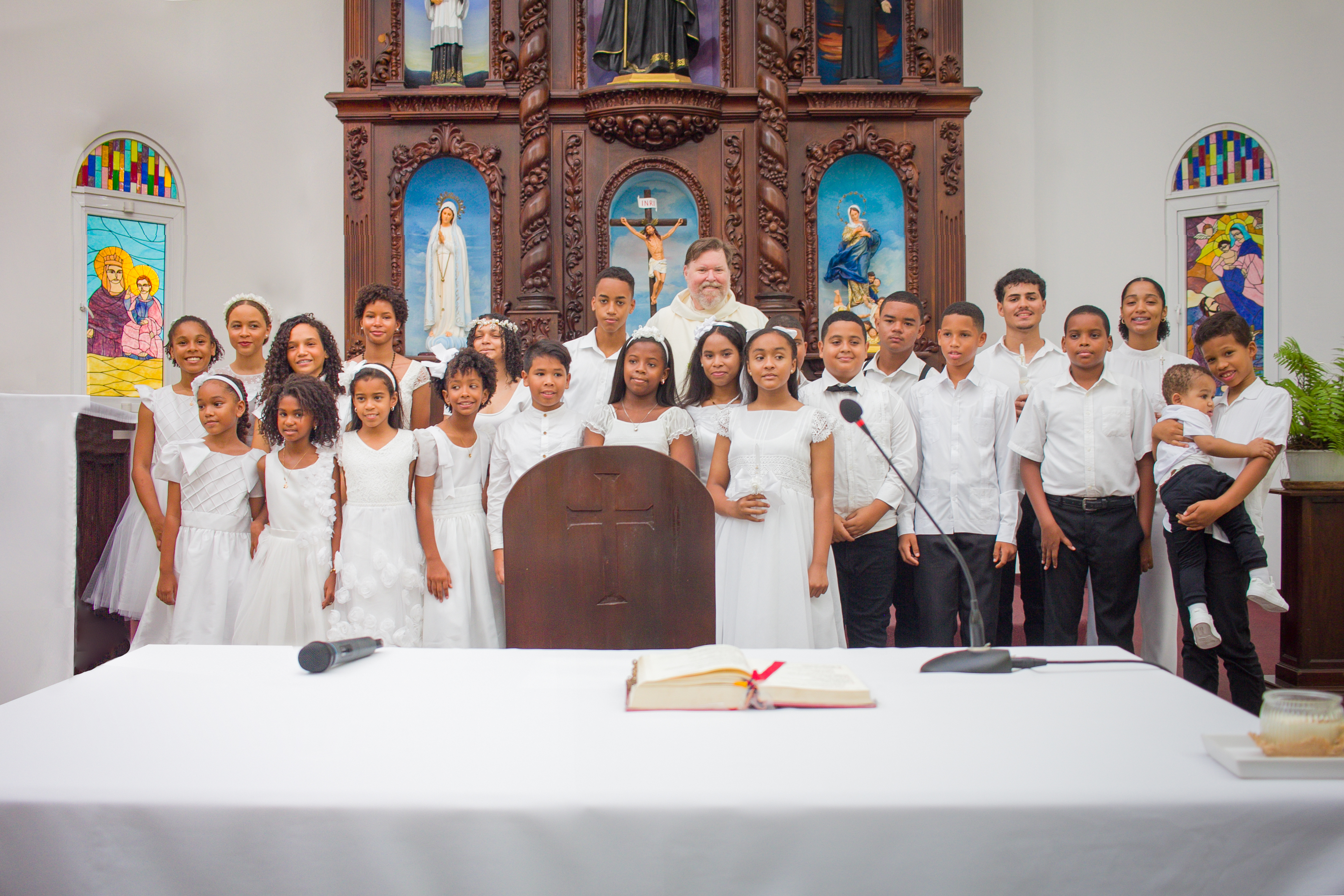 El domingo 2 de junio, estudiantes del Instituto Politécnico Loyola recibieron los sacramentos del Bautismo y Primera Comunión en una celebración eucarística presidida por el padre John Montag, S.J., en la Capillar Mayor de la institución.